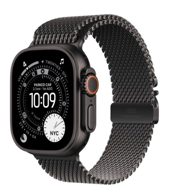 Apple Watch Ultra 3 GPS + Cellular, koperta 49 mm z tytanu w kolorze czarnym, bransoleta mediolańska z tytanu w kolorze czarnym - rozm