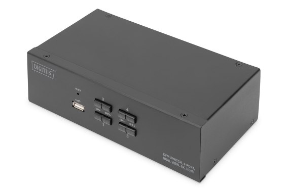 Digitus Przełącznik KVM, 4-portowy, obsługa dwóch monitorów, 4K, HDMI®
