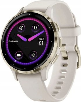 Garmin Venu 3S z czujnikiem tętna HRM Elevate Ox (jasnozłota ramka / jasnobeżowa koperta / jasnobeżowy pasek)