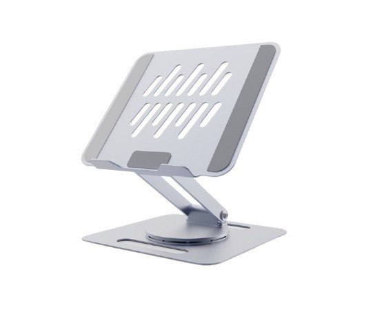 - Składana, obrotowa, metalowa podstawka pod notebooka z płynną regulacją wysokości.