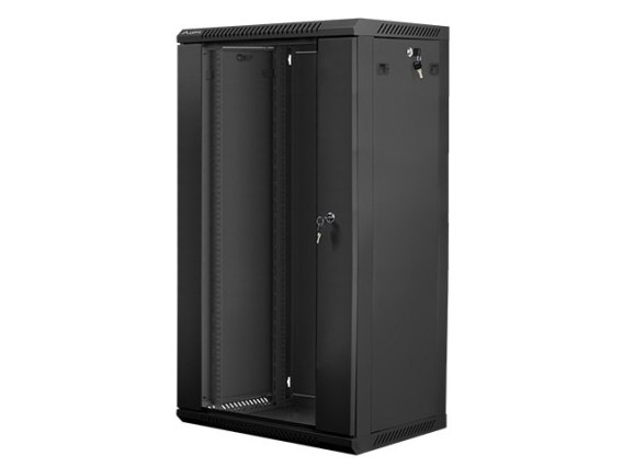 Szafa instalacyjna wisząca 19'' 22U 600X450mm czarna (drzwi szklane)